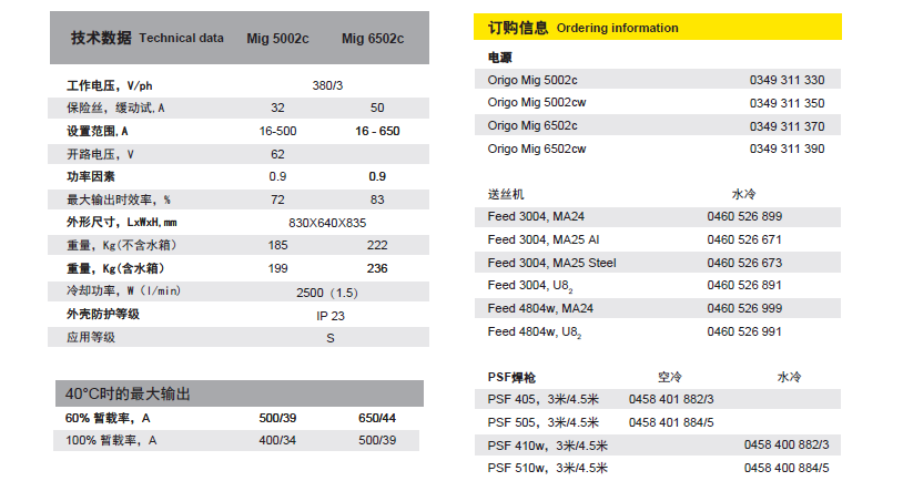 Mig 5002c和Mig 6502c是适用于重载型应用的开关转换(斩波)焊接电源,采用数字控制技术,具有很高的性价比!