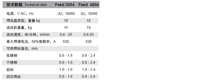 Feed 3004可焊最大直径为1.6mm的焊丝,Feed 4804可焊最大直径为2.4mm焊丝。