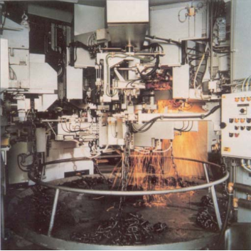 统内,棒料经过高载荷电阻加热,编织成链,焊接,去毛刺,
